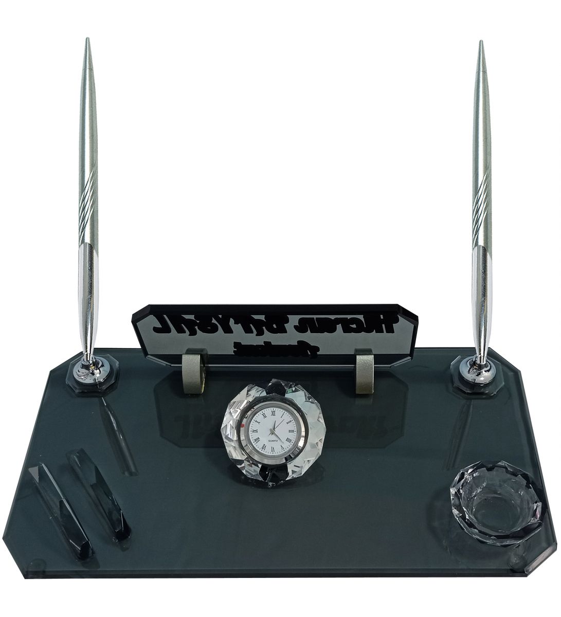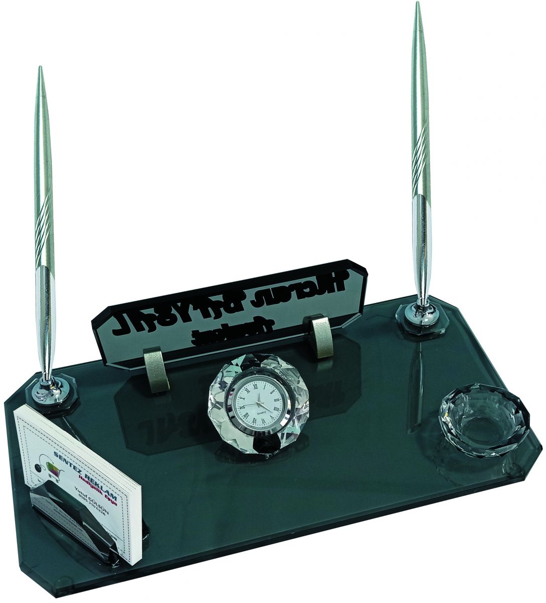 İki adet kalem, saat, kartvizitlik, ataçlık ve İsimlik alanı mevcuttur.