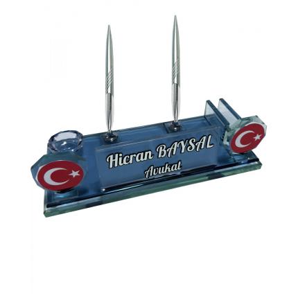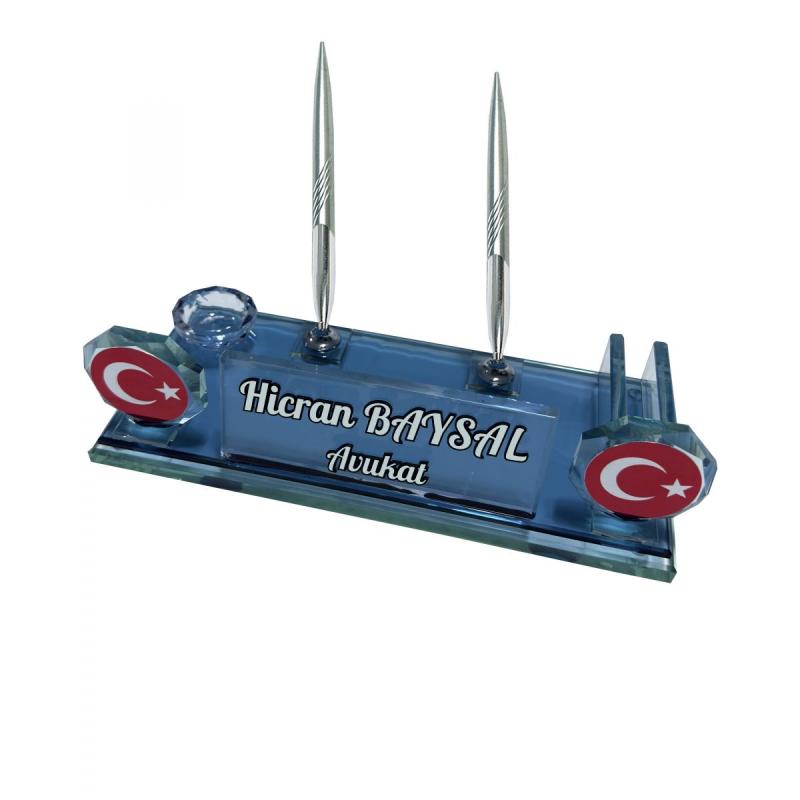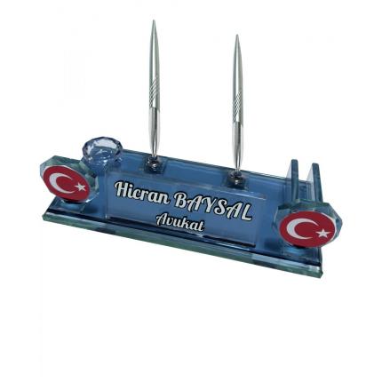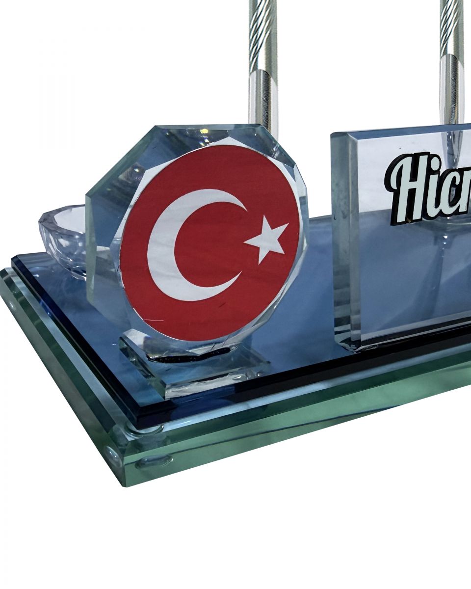 Sentez Türk Bayrağı Kristal Masa Üstü İsimlik